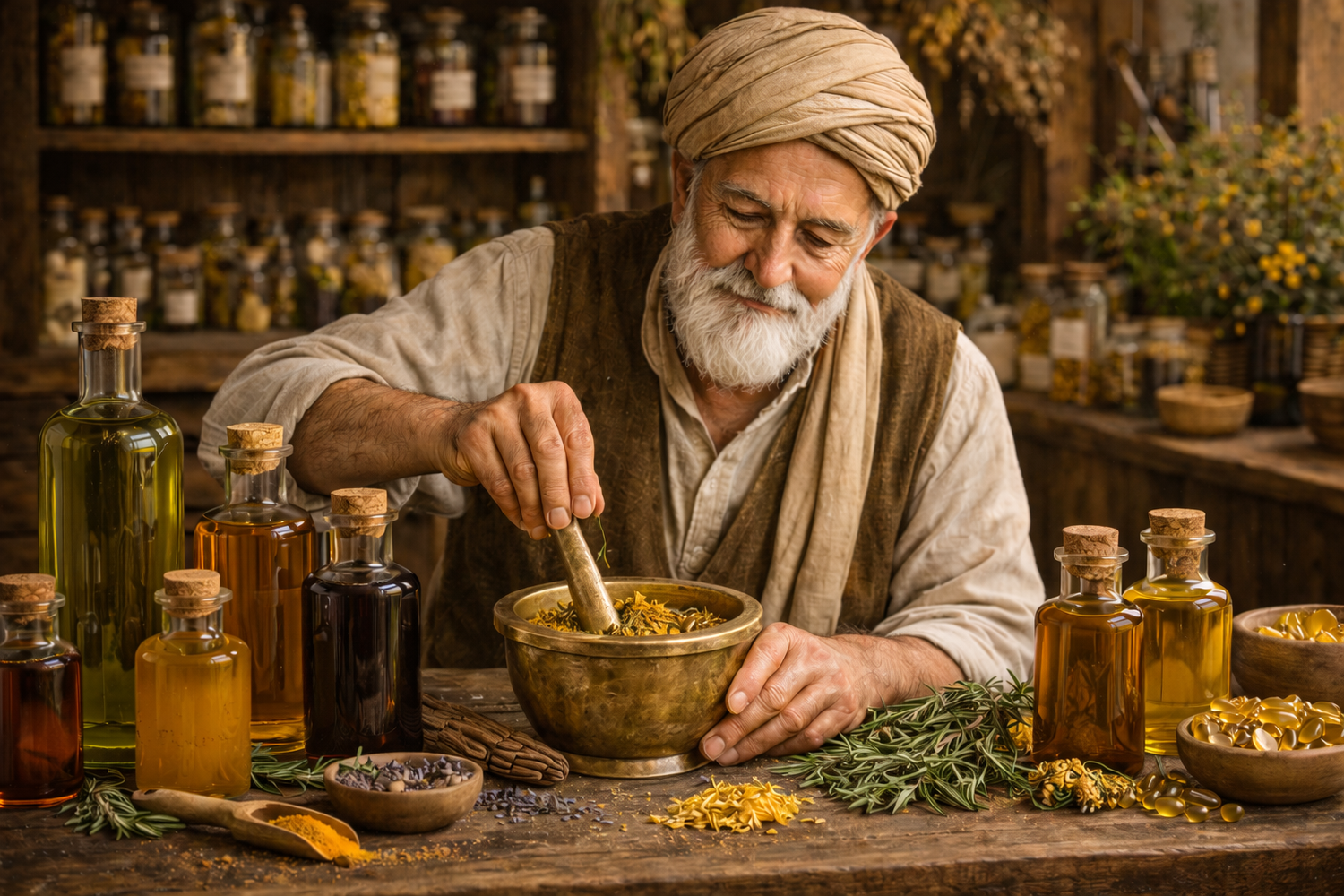 Tam 75 yıl önce, henüz küçük bir çocukken, dedesinin yanında aktar dükkânında oturur, kurutulmuş otların kokusunu içine çekerdi. Dükkanın ahşap raflarında cam kavanozlar, bakır havanlar, sabırla bekleyen şifalı kökler olurdu.